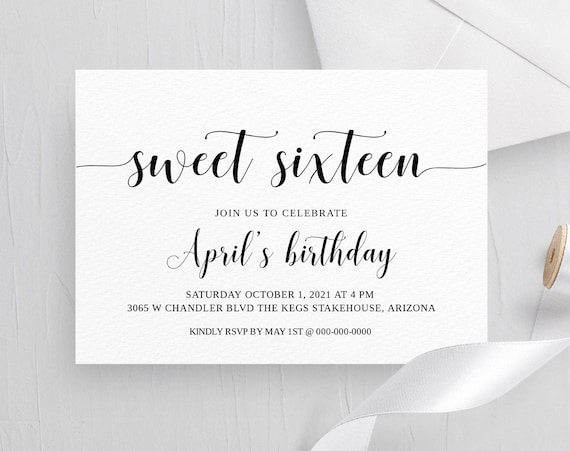 Sweet 16 Invitation Template Modern Sweet Sixteen Birthday Etsy