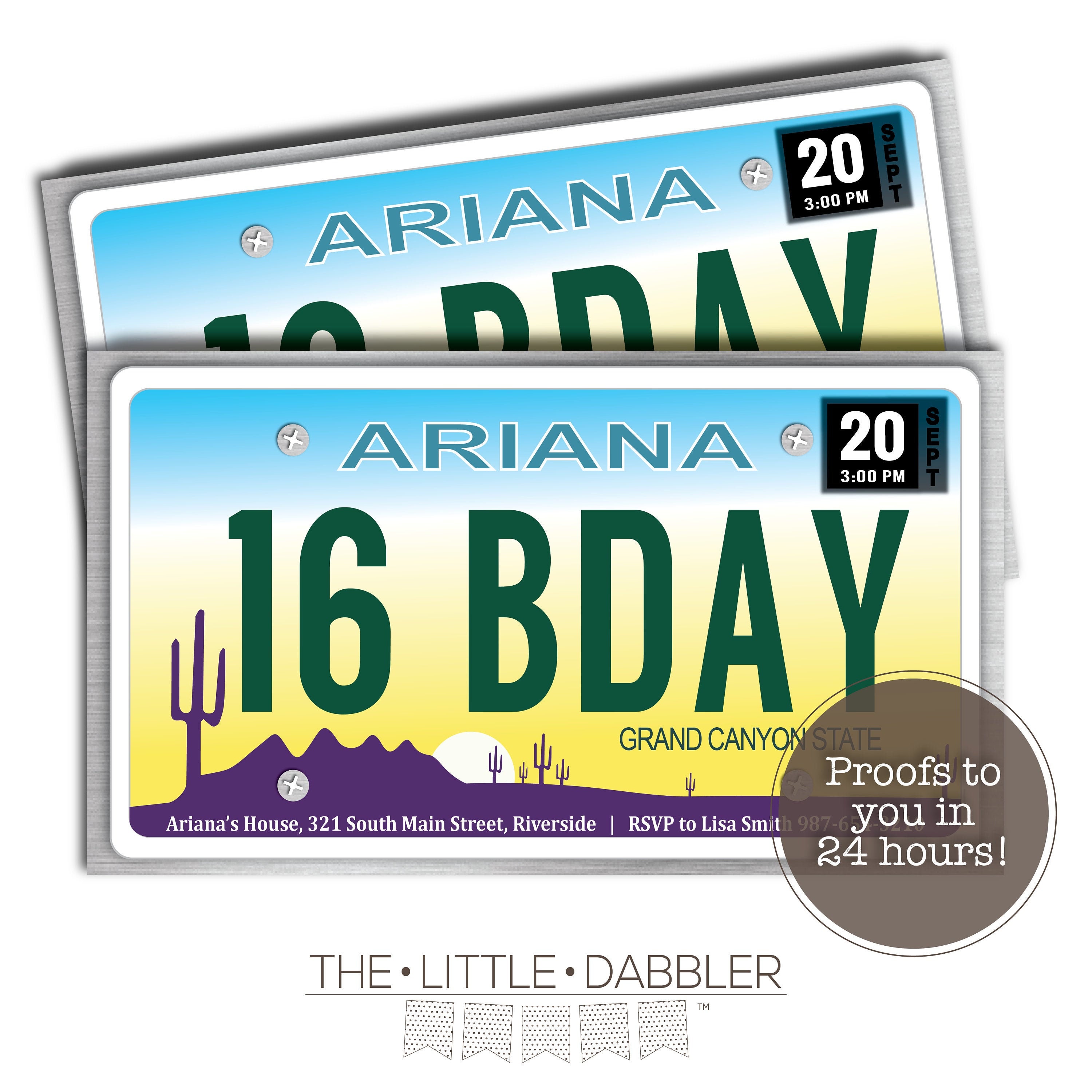 Printable Arizona State License Plate Sweet 16th Birthday Etsy